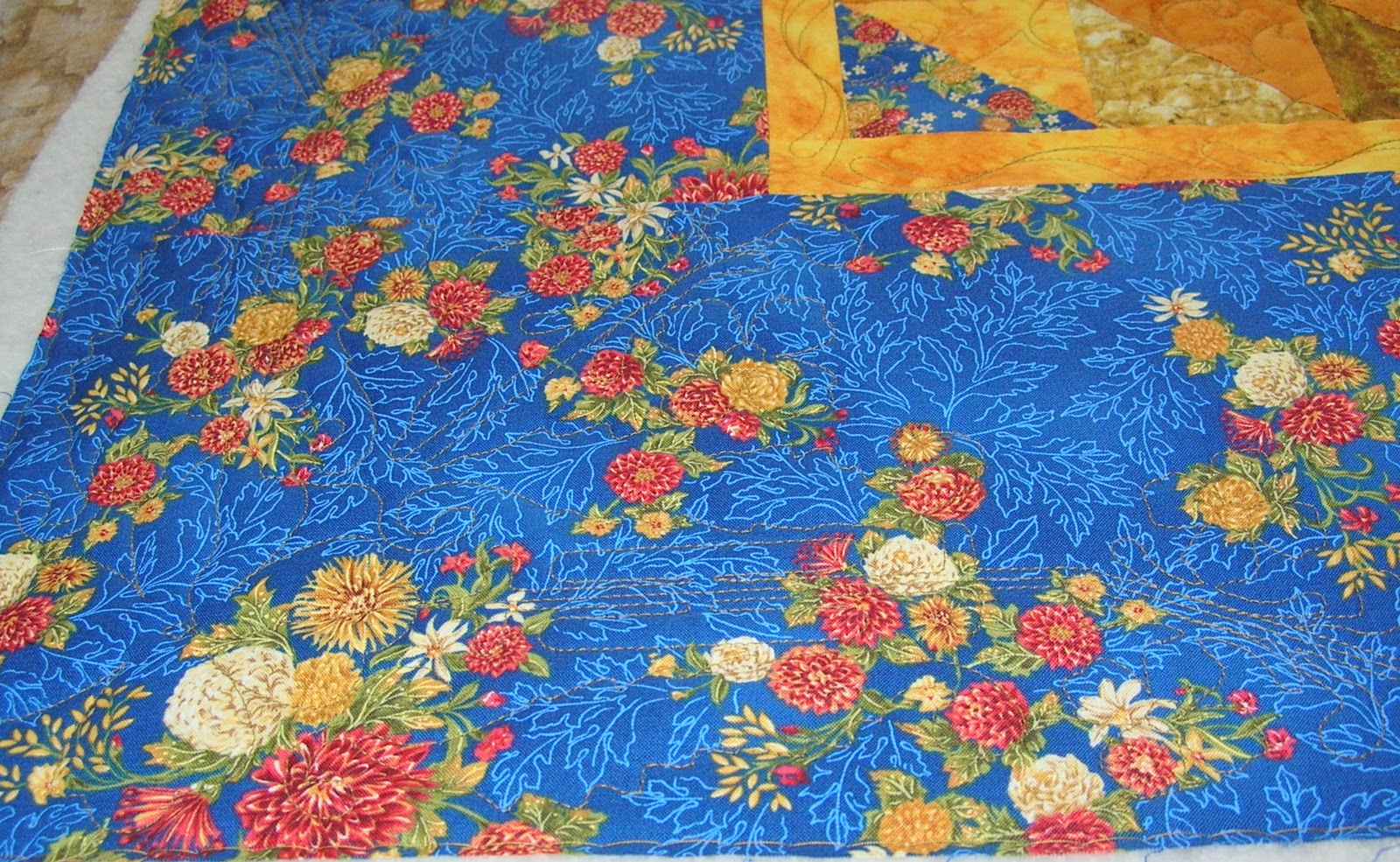 Opted to skip the outer border and just use the floral print for the binding. I didn't have enough to use as backing so I used the same white as the background. The original pattern has very minimal hand quilting on it. I also did very little quilting on this one. Here it is...the first {hopefully of many} quilted wall hangings in our house.